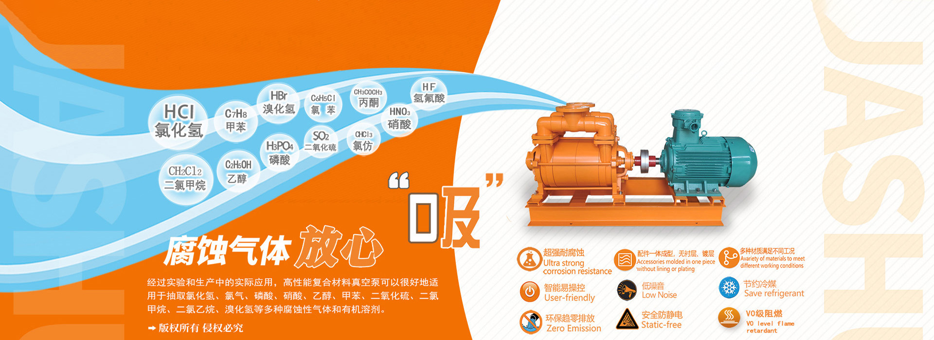 淄博華舜耐腐蝕真空泵有限公司主要生產(chǎn)各種型號和規(guī)格的水噴射泵、耐酸泵、耐酸真空泵等產(chǎn)品,是一家集科研開發(fā)、設(shè)計咨詢、生產(chǎn)、銷售、服務于一體,利用新型高性能復合材料,專業(yè)生產(chǎn)耐腐蝕液環(huán)真空泵的國家高新技術(shù)企業(yè), 坐落于“中國泵業(yè)名城”---山東省淄博市博山區(qū),公司通過了ISO9001質(zhì)量體系認證。公司獨立研發(fā)的具有多項自主知識產(chǎn)權(quán)的專利產(chǎn)品-耐腐蝕系列水環(huán)式真空泵,通過了省級科技成果鑒定,處于“國際先進水平”。 產(chǎn)品過流部件采用三大系列高性能復合材料(HS-V130、HS-V110、HS-V80)一體成型,耐腐蝕范圍廣、無襯層不脫落、節(jié)能效率高、運行可靠、環(huán)保節(jié)水、 體積小、重量輕、使用壽命長等特點。